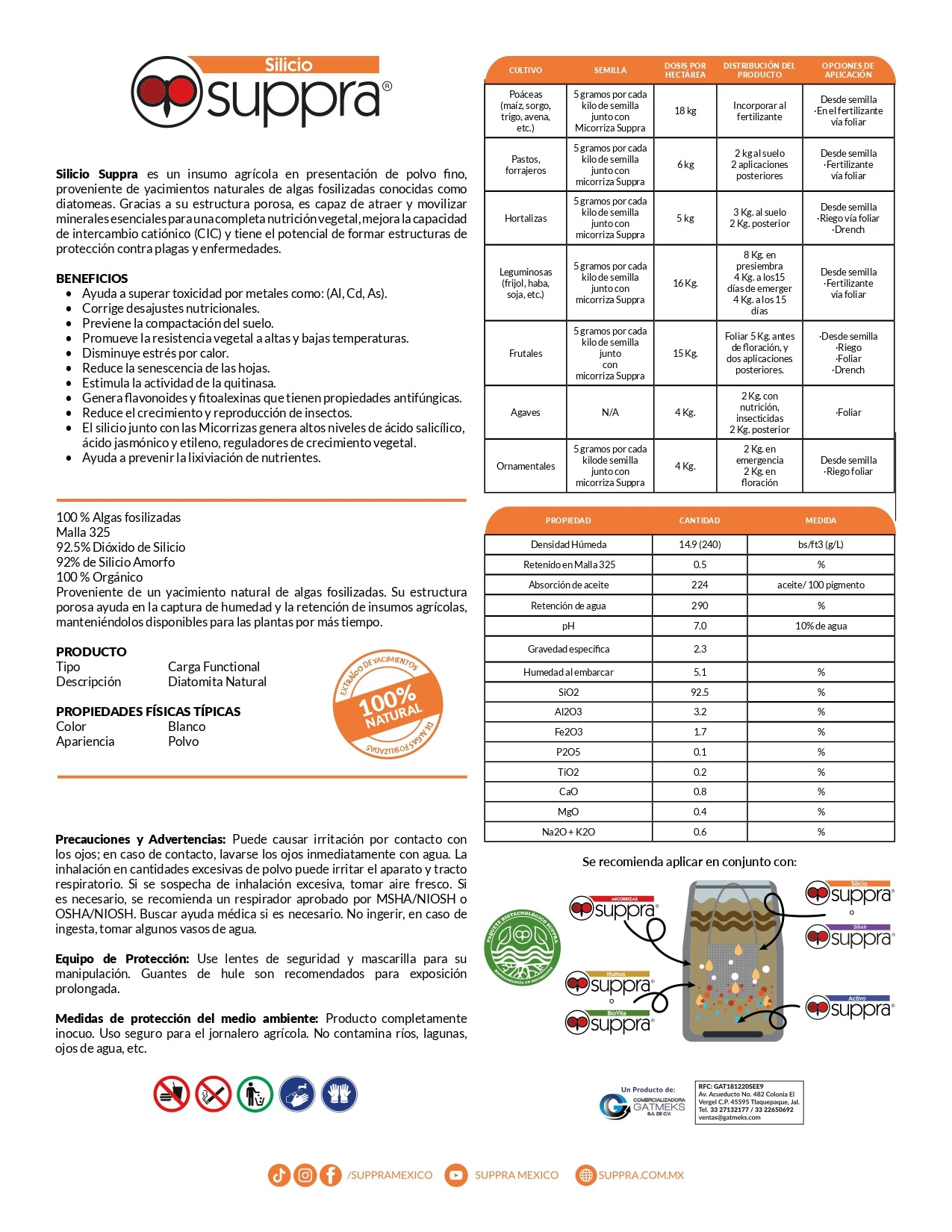 - Silicio Suppra: Diluye primero en agua para asegurar su correcta integración.