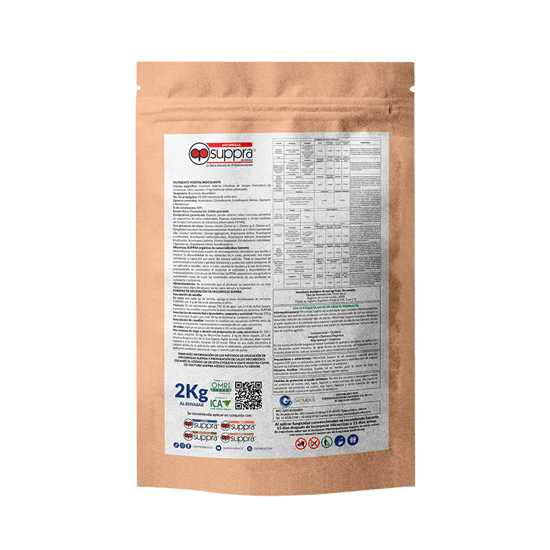 Transforma tu campo con SUPPRA, una solución avanzada que combina innovación y sostenibilidad. Diseñada especialmente para los cultivos de México, esta micorriza integra poderosas endo y ectomicorrizas que maximizan el rendimiento y regeneran el suelo para un futuro agrícola más próspero.